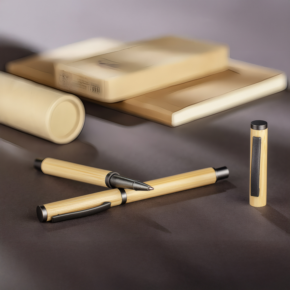 DENI pastaka korpus on valmistatud naturaalsest bambusest, mis on kiiresti taastuv looduslik materjal. See annab kirjutusvahendile eristuva välimuse ning muudab selle sobivaks valikuks keskkonnateadlikuma suunaga reklaamtoodete seas.