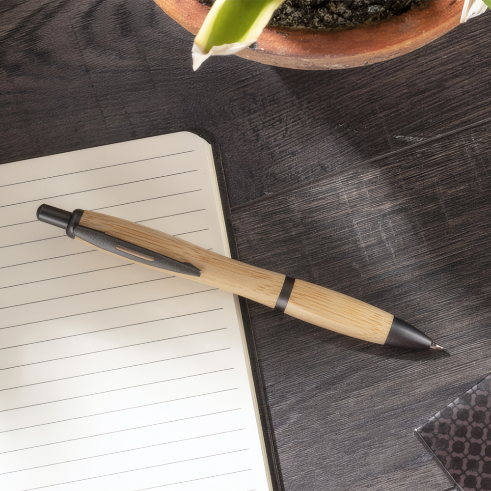 SIGO pastakas ühendab bambusest korpuse ja tumedad grafiiditooni detailid, mis loovad tasakaalustatud ja kaasaegse välimuse. Bambuse naturaalne pind annab kirjutusvahendile erilise tekstuuri ning muudab iga pastaka veidi erinevaks.